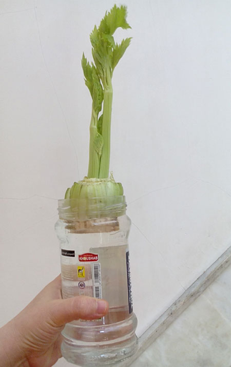 اینا همه شب بو هستن. یه چیز دیگم بهتون نشون بدم ولی من فعلا دارم امتحان میکنم . اونم در مورد کرفس هس که ته کرفس رو چند روز توی اب گذاشتم و کاشتم فعلا که طوریش نشده و برگ داده نمیدونم دیگه واقعا گرفته یا نه. حالا چند هفته دیگه معلوم میشه. الان تقریبا یه ماه شده فک کنم. خلاصه نتیجشو بهتون میگم اگه اینطوری بزرگ بشه که واقعا شاهکاره