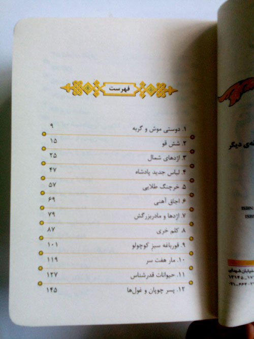 بررررررررررررررررررررررف سلام امروز کلا حس میکنم زیاد خوردم ولی همه میگن چیزی نخوردی . همش داری امار خوردناتو میگیری اینطوری مریض میشی بعد که فکر کردم دیدم اره زیاد چیز ینخوردم چون خیلی کم چیزی میخورم دیگه ، برا همین وقتی یه ذره بیشتر بخورم حس میکنم زیادی خوردم. ولی خب باید ورزش کردنم رو زیادتر کنم اینطوری احساس بهتری دارم خب میخوام بهترین مجموعه کتاب دنیا رو بهتون معرفی کنم. قشنگ تریم ،نازترین و جذاب ترین افسانه های دنیا رو داره. و نه یکی دوتا، یه دنیااااااااااااااااااااااا داستان خوشگل و افسانه ای اگه روی عنوان کتابا نوشته مثلا سیندرلا و چند داستان دیگر، فکر نکنید داستاناش اینا هستن فقط. یه عالمه داستانی که تا حالا نشنیدید . من فهرست یه کتاب رو عکسشو گرفتم نشونتون میدم. و اینکه نویسنده داستان اندرو لنگ هس. یعنی اینکه زرتی پرتی نرفتن داستان جمع کنن و چاپ کنن. من دلم نمیاد تند تند همه رو بخونم برا همین یه کتاب غیر از ین مجموعه هم میخونم که زودی تموم نشه