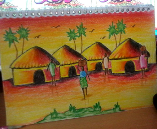 خب بذاريد از اين چند روزه بگم اصن يادم رفته از بس سر و كله زدم با كامپيوتراي مختلف و برنامه هاي مختلف چند روز پيشا كه دقيقا يادم ني كي بود دو سه روز پيش ميشد بعدش رفتيم ميوه فروشي بعد گفتم حاجي پاكت كن هر كدوم رو جدا من برم هندونه انتخاب بنومايم بعد رفتم چهار پنج تا هندونه جدا نومودم كه ديگه داش نفسم ميومد تو حلقم خلاصه از اين قرار بود بعد ديگه بقيه خريد ميوه و اينا انجاميديم و امديم كه چشمم زدن خواهرم نايلون خربزه شترق گذاش رو زمين حياط كه دوتا ناقص شدن و منفجر شدن خب حالا بگذريم از اين قضيه خربزه اين نخاشي رو در اين روزاي دوري از وبلاگ و انجمن كشيدم اين نقاشيمه