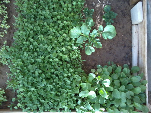 خب از این بگذریم سبزی هام چقده رشد کردن بعد اینکه نایلون کشیدم اینا گشنیز و سیب زمینی و ترب هس خب جا کمه کم کاشتم