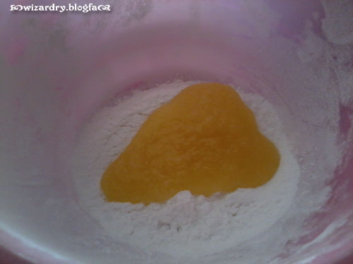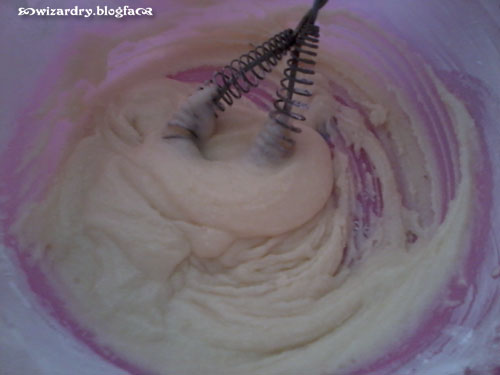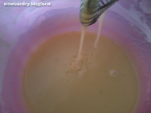 بعد 250 گرم ارد رو الك كنيد كم كم بهش اضافه كنيد و هم بزنيد.