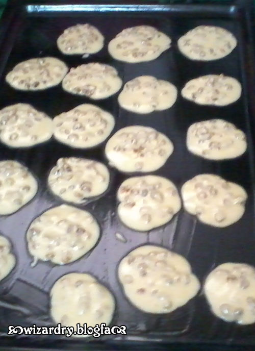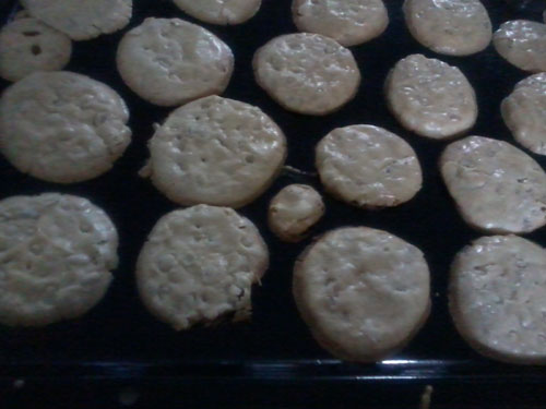 بعد كاغذ روغني ميخواد كه توي سيني بذاريد ولي من ندارم فهلا.سيني رو چرب ميكنيد بعد قاشق برميداريد ميريزيد توي سيني قاشق قاشق.خيلي با فاصله بريزيد چون يهويي موقع پخت هم پخش ميشه و به هم ميرسن برا همين با فاصله بريزيد