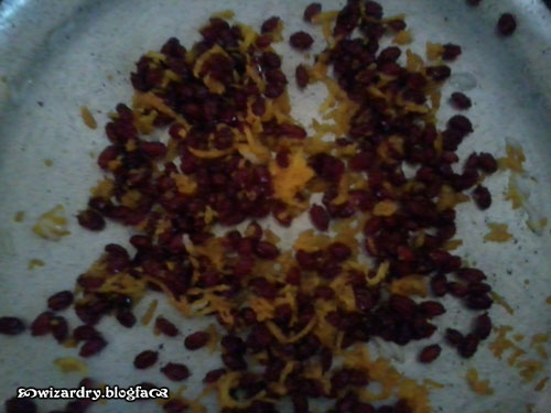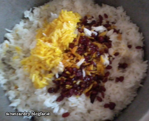 بهدش توی ماهیتابه یه ریزه روغن میریزید بهد زرشک در اخر پوست پرتقال رو یه کوچولو تفت میدید