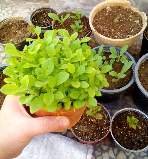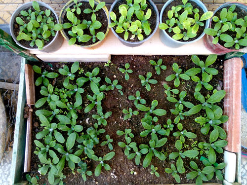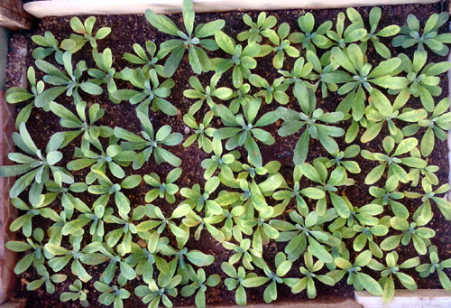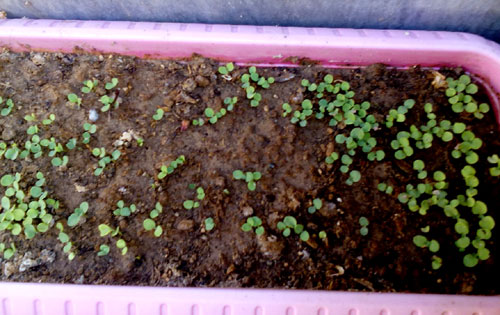 وقتی به دستم رسید همشو براتون میگم چیا هستن . این هم از اوضاع بر و بچ کلروفیل دار من این بذرهایی هس که در پاییز کاشته شدن و اینو بدونید که اگه بذرا رو میپاشید روی خاک حتما باید بعدا اونا رو از هم جدا کنید و با فاصله بکارید و اضافه های اونا رو توی گلدونای دیگه بکارید. عکس قبل و بعد رو نشونتون میدم ببینید چه خوشگله .همه توی زمستون رشد کردن