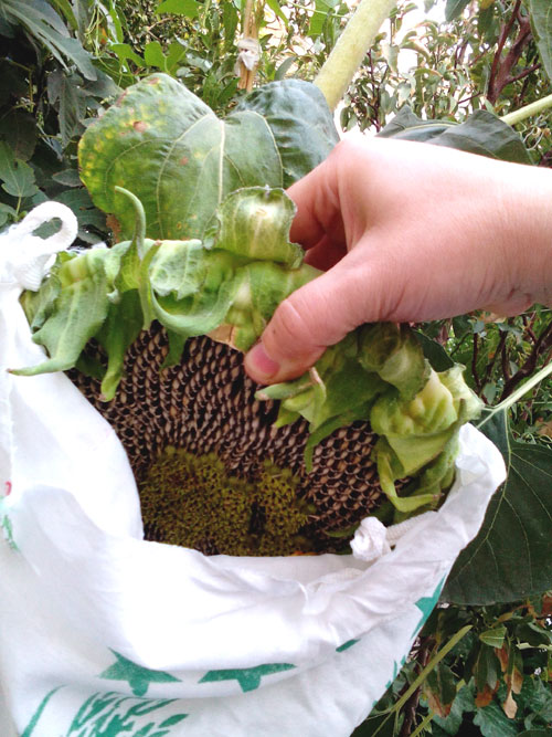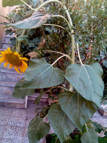 اونطرف حیاط خب میتونن برن چیزی نیس اونجا اب و نون خشک براشون میریزم اینور دیگه پرووگیه .حتی نمیذارن که آفتابگردون رشد کنه همه برگاشو میخورن به چه سختی یه آفتابگردون رو گذاشتم بزرگ بشه این آفتابگردون غول پیکر هس