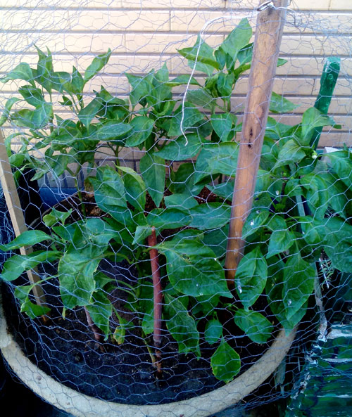 اینو چندبار کاشتیم خیلی وقت پیش ولی هیچ وقت ازش استفاده نکردیم. اینا برا پوست میگن خیلی خوبه به جا لیف حمام ازش استفاده میشه و لایه بردار و از این چرت و پرتا که میگن هس خارجیا از اینا به جا لیف بدن استفاده میکنن بیشترشون. اینم فلفل دلمه ای ها که به خاطر همون تور گیاهی که گفتم روشون کشیدم تابستون خوب نشدن ولی حالا یه ذره رشد کردن دوباره