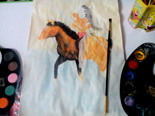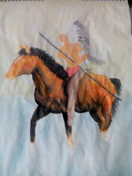 کاغذم فعلا چروک شده بعد از پشت اتو میکنم خوب میشه فک کنم تابلوئه چیه دیگه. مردسرخپوست اسب سوار