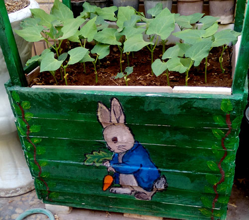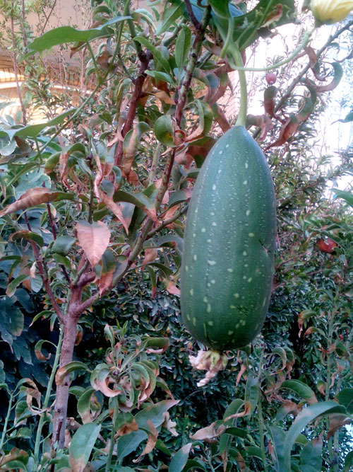 کدو تنبل هم کاشتم که ببینم چطوری میشه. توی باغچه زدم از باغچه چوبی درش اوردم.