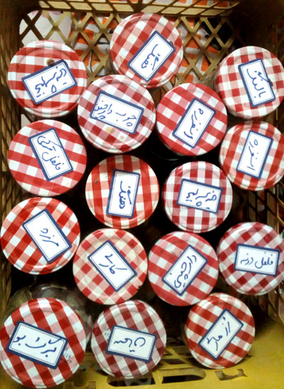 یه چیز دیگم که خیلی کارمو راه مینداخت و اعصاب هممون خورد میشد شیشه های ادویه و این چیزا بود. خب ما یه عالمه از اینا رو داریم بعد هر وقت یه چیزی رو میخواستیم باید همشونو بلند میکردیم ببینیم تا چیزی که میخواستیم رو برداریم. من یه عالمه برچسب هم خریدم فک کنم 500 تا هس یا هزارتا یادم نیس.این برچسبا هم اندازه های خیلی مختلف و زیادی داره. بعد من نشستم رو همه شیشه ها نوشتم و برچسب زدم خیلی راحت شده کارمون. این برچسبایی که گفتم و شیشه ها البته یه ذره از اون تعداد زیادی هس که داریم