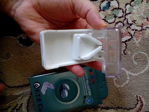 قرص رو توی اون قسمت مثلثی میذاری و درش رو میبندی قرص رو نصف میکنه یه تیغه ی خیلی تیزی داره. خیلی عالی نصف میکنه مخصوصا قرصای ریز رو. قیمتش هم که روش پیداس 34 تومن . این عالیه اگه مشکلی با قرص نصف کردن داشتید. من چون قرص ضد استرس میخورم بعضی وقتا برا خاطر دیسک کمر و گردنم. بعضی وقتا که شدید میشه یک چهارم قرص ضداسترس رو میخورم خیلی ریز میشه ولی اثرش عالیه یعنی این اندازه برا همون استرس که روی دیسک فقط اثر میذاره نه روی حال خود ادم، خیلی اثر داره. استرسایی که حالتون رو تغییری نمیده ولی اگه دیسک کمر داشته باشید خیلی روی درد پا و زانوتون اثر داره. اینا که دیسک دارن میفهمن چی میگم اینو بگم که اگه نوشته هام عجیب غریب تایپ شده ببخشید چون من به این کیبورد عادت ندارم کلید اینترش شکلش فرق داره و چندتا کلیدای اصلیه دیگش. برا همین خیلی قاتی میکنم. منم اخه موقع نوشتن روی کیبورد نگاه نمیکنم فک کنم اشتباه زیاد بزنم الان. خلاصه که ببخشید دیگه به خوب تایپ کردن خودتون اینم گیاه لیف که داره رشد میکنه همچنان نمیدونم کی از رشد وامیسه