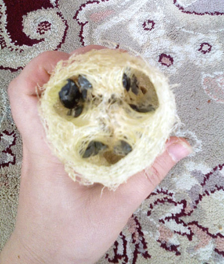 با اینکه تیم مغرب یا مراکش باخت ولی از بُرندن هم قشنگ تر بود واقعا آفرین بهشون خیلی بی نظیر بودن حالا برگشتم به طرفداری از آرژانتین دوباره و اینکه شدیدااااااااااااا از باختن پرتغال خوشحالم سلام من اومدم و بسیار بسیار خوش اومدم در این پست شما شاهد محصول بسیار باحال و کاربردی باغبونیه من هستید لیف رو پوستشو کندم البته بعد از اینکه خشک شد. بعد دونه هاشم درآوردم و برا ظرفشوئی گذاشتم چقدر خوبه . خیلی نرمه. اصلا فکر نکنید زیر هس یا همش خرد میشه اصلا اینطوری نیس خیلی نرمه مث پلاستیک نرم. خیلی کف رو خوب به خودش میگیره . توی عکسا نگاه کنید برا درآوردن دونه هاش اونو به دستتون بزنید یا به زمین بزنید چند بار ، دونه هاش درمیاد.