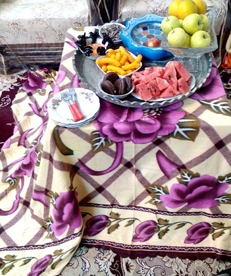 همچین یه نسیمی هم داره میاد بعد از کلی باروون که دیشب باریده از سرما خشک نشیمممممممممممممم صلواااااااااااااااااااااااات سلام . چند دقیقه س نشستم نگاه میکنم به عکسایی که گرفتم و به خودممیگم از کوجا شروع کنممممممممممم؟ چون شب یلدا بوده از همین شروع میکنیم به نام خدا ما شب یلدا را خیلی ساده برگزار کردیم. خیلی از چیزهایمان را هم شب های قبل از یلدا چون صبر نداشتیم خورده بودیم و نداشتیم چیزهای دیگری مثل پفک و لواشک و بیسکویت روکش کاکائویی را توی سینی شب یلدا گذاشتیم تا شاید جبران خورده هایمان را بکند شب یلدا پاچه و سیراب بار گذاشتم و بعد از دو ساعت و نیم پخیده شد و همون ساعت 6 شب بعد از نماز مغرب نوش جان کردیم و بعد از نیم ساعت نشده بود که هر چی باقی مونده بودیم یه خورده خوردیم و شب یلدا را تمام کردیم و اتفاقا زودتر از هر شب دیگری، خوابیدیم این بود از شب یلدای ما این هم عکسای ما