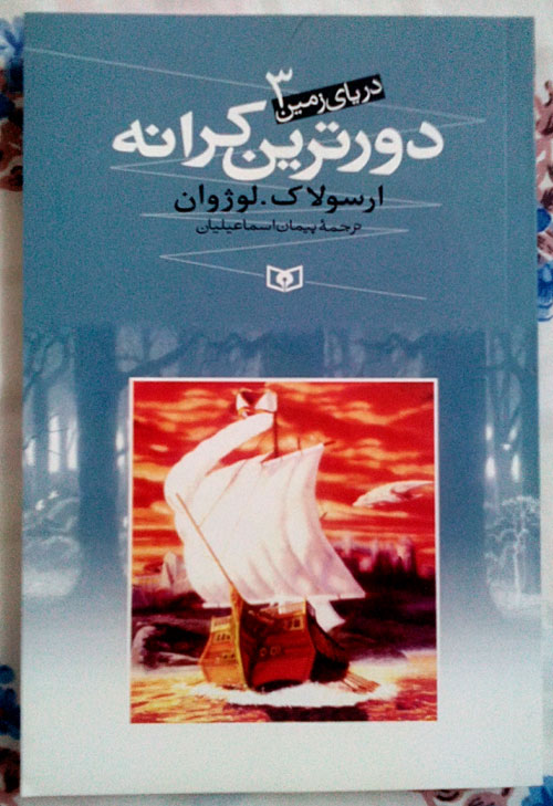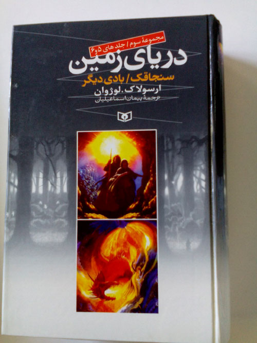این کتاب درباره حضرت سلیمان هس خیلی خوشگله .روشم نوشته بازخوانی قصه حضرت سلیمان. که باد در اختیار حضرت سلیمان بوده. کلا من داستان پیغمبرا رو خیلی دوس دارم. اماما رو هم خیلی دوس دارم. بچه هم که بودم کتابای اماما رو همیشه داشتیم. همیشه هم از روشون نقاشی میکشیدم. اینقد دوس داشتم درخت نخل بکشم کتاب بعدی دریای زمین هس. خیلی قشنگه. اصلا یه کتاب متفاوت. خیلی متفاوت. 6 جلد هس. ولی میتونید هر جلدی رو جدا بخونید یعنی ربطی به هم نداره اینقد که متوجه نشید چی به چیه. جلد 1 و 4 موجود نبود.منتظرم همین سایتی که میخرم موجود کنه اگه نه جای دیگه هم درخواست کنم. الان من جلد 2 رو خوندم. جلد 3 و 5 و 6 رو خریدم. این جلد 5و 6 هس که با همه. هزار و خورده یا صفحه هس