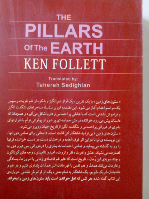 اول هم حتما پایه رو به طاقچه وصل کنید بعد نگه دارید به دیوار. بعد روی دیوار رو اول علامت بزنید یکی از سوارخا رو بعد دلر بزنید بعد دوباره بردارید سوراخ دیگه رو علامت بزنید و دوباره دلر بزنید. هر سه تا رو با هم علامت نزنید هیچ وقت. چون وقتی دلر میزنید خیلی جاهاشون تغییر میکنه. نوار ام دی اف هم از ابزار فروشیا یا هر کی توی کار ام دی اف هس مث کابینتیا و اینا میتونید بخرید ازشون. من فعلا نخریدم دیگه حوصلم نرسید خیلی خسته شدم راستی یه نکته ی مهم: جهتای حرکت سیم برق رو توی خونه میدونید هر جا پریز هس یا لامپ ف مهتاب یو این چیزا. اگه دقیق نیمدونید سیم کشی چطوریه، برق داخل همون قسمت رو قطع کنید و با سیم رابط برق رو وصل کنید به جای دیگه.بالای پریزا رو هیچ وقت دلر نزنید. خب این از طاقچه که بحثش تموم شد حالا بریم سراغ کتابای جدیدی که خریدم. یه چندتائیشو میذارم. از قبلیا رو هم هنوز نذاشتم. یه سری از کتابا رو باید هر کدوم رو جدا بذارم براتون چون کلی حرف براشون دارم ولی اینایی که نخوندم هنوز رو میذارم. خیلی در موردشون تحقیق کردم و یه کمی ازشون رو خوندم تا انتخابشون کردم . قبل از هر چیزی از شیده ی عزیزم تشکر میکنم کتاب ستون های زمین جلد اول ودوم رو خریدم البته همین دو جلد هم هس. رمان هس که وقایع قرون وسطی هم توشه. وقتی بخونم دقیق میگم.