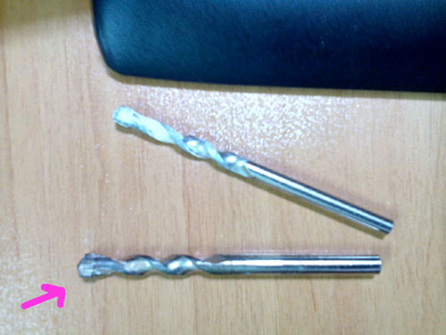 مته ی بزرگ رو برا دیوار. اون که علامت زدم مته 8 هس که برا اون پیچی که خریدم باید استفاده بشه اگه موقع چرخش مته نمیتونید تشخیص بدید عمق دلر زدن رو پیچ رو بذارید کنار مته بالای اون اندازه رو چسب بزنید. اینطوری میتونید ببینید چقد باید دلر بزنید.