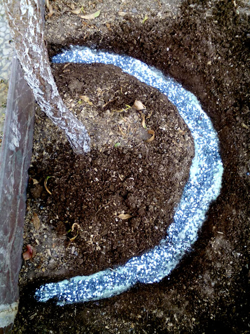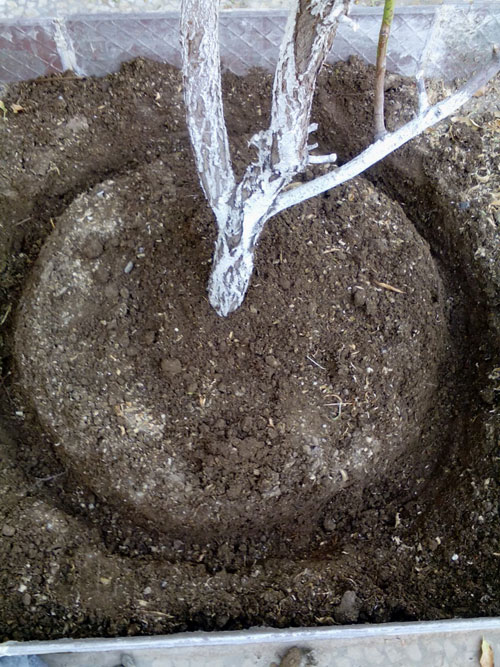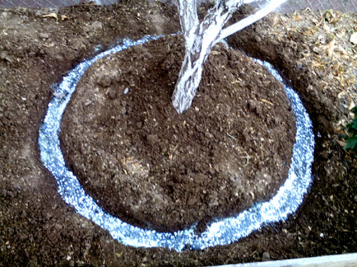 داخل پیمانه ها مدرج هس به گرم. خیلی خوبه. بعد یه چاله 5 سانت دور تا دور درخت میکنید .سایه انداز درخت. من با دستم کندم چون میخواستم ریشه آسیب نبینه