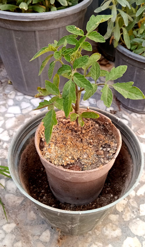 این گوجه هایی که کاشته بودم بزرگ شدن و گل دادن حالا ببینم گوجه میشه یا نه