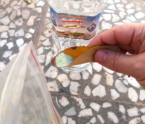 بعد اندازه یه قاشق چایخوری اهن از هر مدلی بود برمیدارید. من با برگ درخت اندازه یه قاشق چایخوری برداشتم