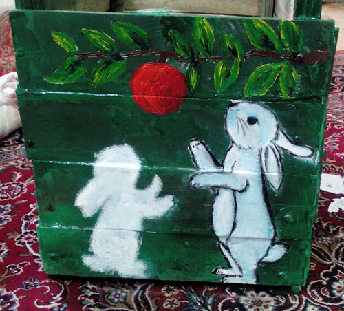 تازه بعد قرنی فهمیدم به بادووم زمینی حساسیت دارم. دیروز که خوردم یعنی جونم بالا اومد . حالت تهوع پیدا کردم شدید. سرمم درد گرفت دقیقا یه طرف سرم چشامم داش از کاسه درمیومد. حالا که خوردم مامانم میگه بادووم زمینی تیامین داره برا میگرن خوب نیس سلام الان شب عیده. عیدتون مبارک باشه به خوشی و سلامتی. امروز دوشنبه س. هنوز خیلی کار دارم باید فردا تمام حیاط رو بشورم. چون این باد و بدتر از همه نقل و انتقالات من ،اساسا گند زد به حیاط بینهایت سنگین کاری کردم و بدتر از همه فشاری که به دیسک گردنم وارد کردم که دیسک گردن هزار درجه بدتر از دیسک کمره. و الان من میترسم از کارایی که کردم گفتم بهتون که یه باغچه چوبی ساختم اونم چه باغچه ایییییییییییییییییییییییییی خب من راستش نمیدونم چرا یهو هیجان زده شدم که اینو درست کنم این آخرای کار هس. بتونه زدم و رنگش کردم بعد هم نقاشیش کردم