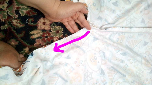 ببینید اول پارچه رو چهار لا تا میزنید یه شلوار که خیلی خودتون راحت هستید باهاش رو برمیدراید و تا میزنید لبه ی صافش رو میذارید رو لبه ی چهار لای بسته ی پارچه