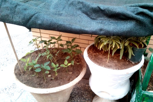 دورشون تور گرفتم چون این اندازه که هستن پرنده ها میخورن همشو. وقتی بزرگ شدن تور برمیدارم. همشون زیر نایلون هستن .این دوتا از شب بوهام هستن
