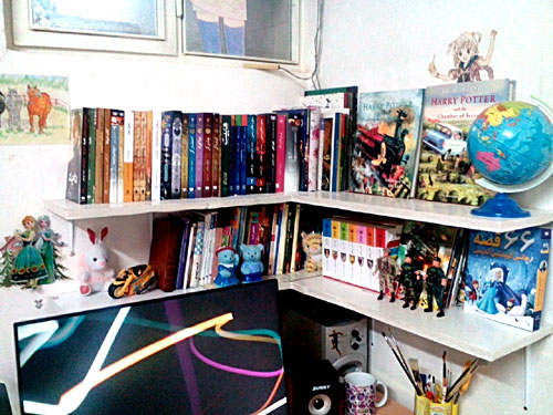 خب از این قضیه بگذریم. خب برسیم به یه کاری که کردم. میدونید که نمایشگاه کتابه. و البتتتتتتتتتتتت تخفیف هایی که میدن این موقع ها. برا همین من خیلی کتاب خریدم. و از اونجا که جام کم بود تقریبا یه ماهه تو فکر بودم که طاقچه های کتابامو زیاد کنم کار خیلی سختی بود طاقتشم نداشتم ولی دیدم کتابامو که بخرم اونوقت خراب میشه اگه رو زمین باشه . چوب ام دی اف داشتم بعد چون واسه کمرم میترسیدم خودم ارّه کنم برا همین همه اندازه ها رو خط کشیدم با مداد روی چوبایی که اماده کرده بودم و دادم بیرون برام بریدن. 30 تومن هم گرفتن که خب خیلی چوبا زیاد بود. خیلی هم می ارزید. من باید جون بکنم برا یه ذره ارّه کردن. بعد خلاصه یه چیزایی هم از اینترنت خریدم که یادم رفت از اونا عکس بگیرم یه جایی بنویسم الان، چون یادم میره بعد من الان طاقچه های اتاقمو به اینقد رسوندم فک کنم کم کم تا سقف و دور تا دور اتاقمم برم