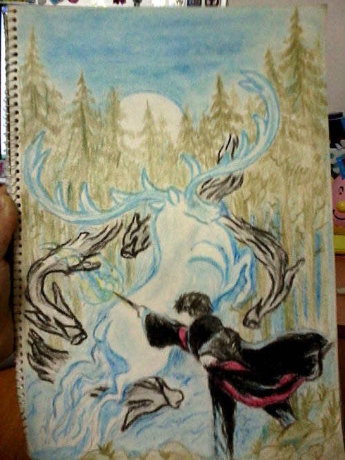 اينم از يه صحنه هاي هري پاتر هس اونجا كه اين "ديوانه ساز ها" بهش حمله ميكنن بعد گوزنه نجاتش ميده البته خودش هس . به خواهرم نشون دادم ميگه قشنگه شمام ببينيد قشنگن