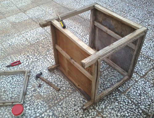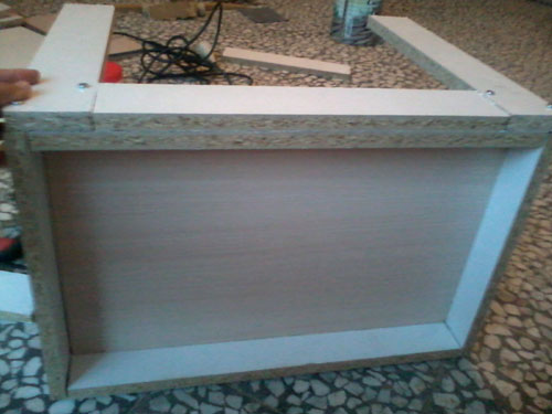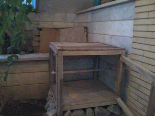 آخه لولاهاي درش كنده شده بود و سقفش يه خورده نازك بود حس ميكردم دو بار گربه روش بپره مستقيم سقوط ميكنه رو كفترا به همين خاطر يه تخته از اين فيبرا روش كوبيدم و تعميرات تكميل شد و خونه در محل قرار گرفت و دورشم سنگ گذاشتم كه گربه ها نرن زيرش