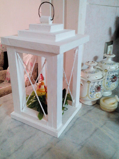 این یه نوع چراغ خارجی هس که توش شمع میذارن قدیما ازش استفاده میکردن. ولی الان همه برا تزئین ازش استفاده میکنن. من خیلی دوسش داشتم. همیشه دلم میخواس درستش کنم