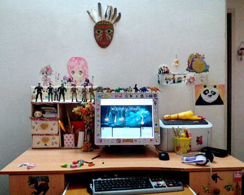 خب حالا چندتا چيز جالب انگيزيجات نشونتون بدم چون خودم باهاش فوران ذوق مرگيات بهم دس داده شما رو هم رد اين فوران شريك كنم ميزمو كه ساختيده بودم تبديل كردم به ميز طراحي و نخاشيم اين عسك قبل از چسبوندن استيكر