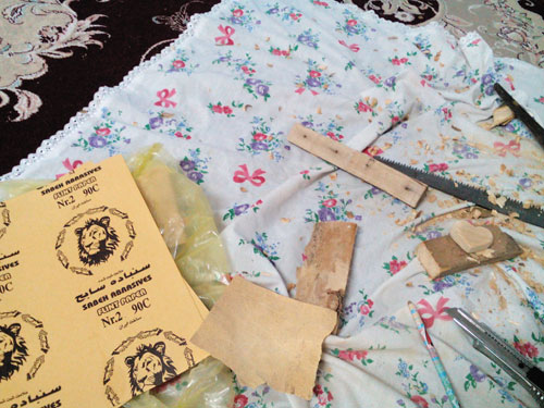 اينقد من اين استيكراي پوه رو دوس دارم كه نگووووووووووو و بدين ترتيب ميز طراحيم براي كشيدن نخاشياي زيباروي آماده شد ميدونيد بدترين قسمت كار اين بود كه بايد از بغل يه چوب دراز، يه چندسانت ارّه ميكردم